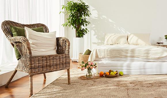 내구성이 좋은 천연 라탄 소재로 거실 및 방 등에